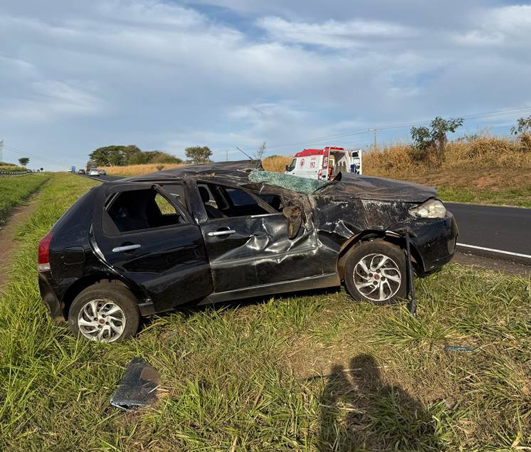 Pneu estoura e causa capotamento na SP-320; cinco pessoas ficam feridas